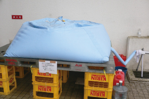 震災発生から3週間近くになった頃に湊、鹿妻、渡波地区の避難所を回ったのですが、湊中学校には仮設トイレが設置されているだけで、校内のトイレの汲み取りはまだ済んでおらず、鹿妻小学校や渡波小学校は汲み取りはされていたものの、衛生状況は劣悪でした。でも、その調査中に、私は渡波小学校の廊下に段ボール製の小部屋のようなものを見つけたんです。ドアがついていて、中を覗いてみると洋式のトイレが入っていました。室内での設置が可能なトイレだったんですね。そして、その仮設トイレを提供したのは「日本セイフティー」という企業だと分かりました。この仮設トイレはラップ式トイレというものだったんです。