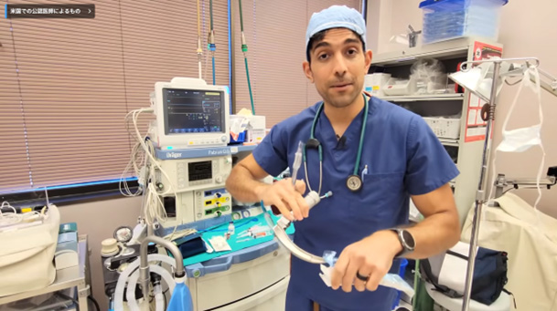 人工呼吸器やモニターを一つひとつ確認し、呼吸確保の準備を徹底する様子を映像で解説。「麻酔は眠りではなく医学的昏睡」であることや、挿管の重要性、周術期管理の細やかな工夫が伝わります。医師だからこそ共感できる緊張感もリアルに描かれています。