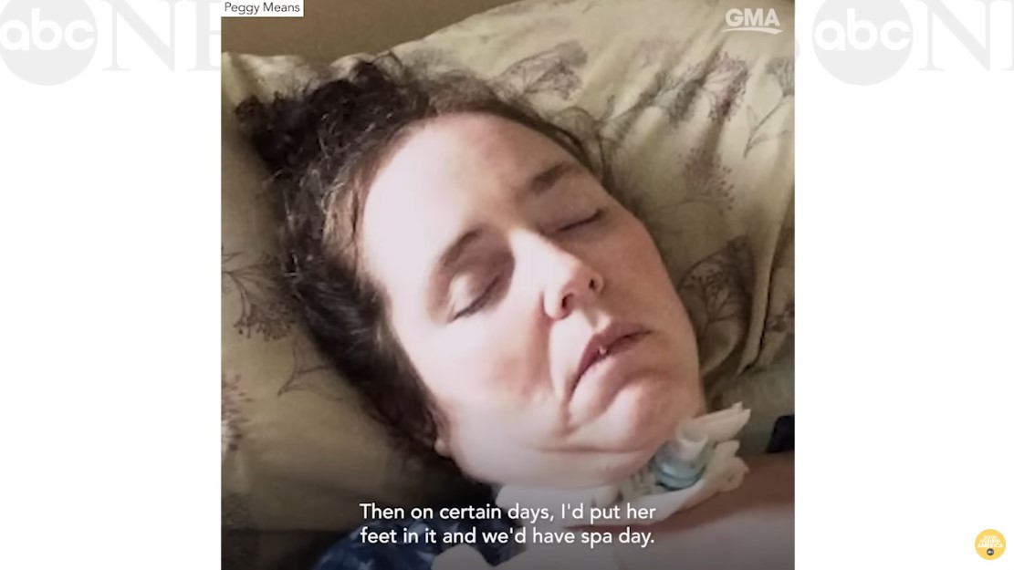 このビデオは、5年間の昏睡状態から目覚めたジェンと、夫の献身的なケアの記録です。